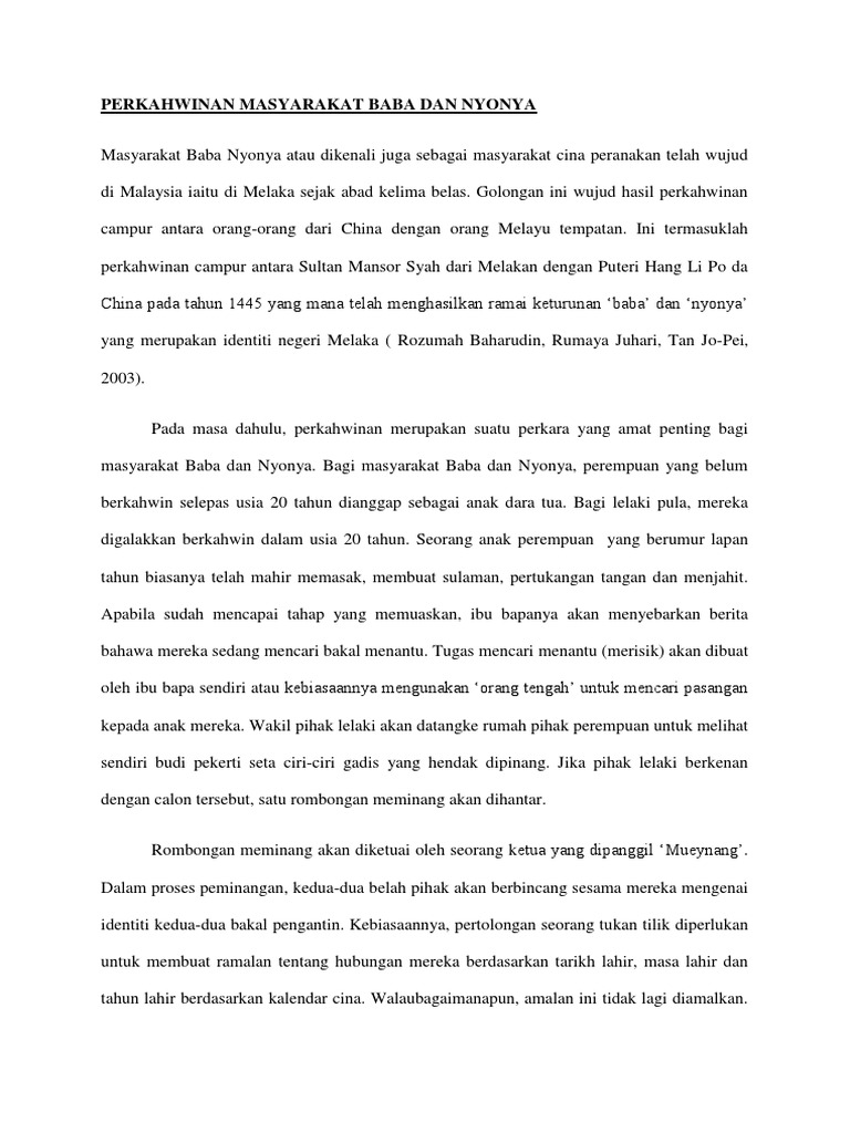 Perkahwinan Masyarakat Baba Dan Nyonya Pdf